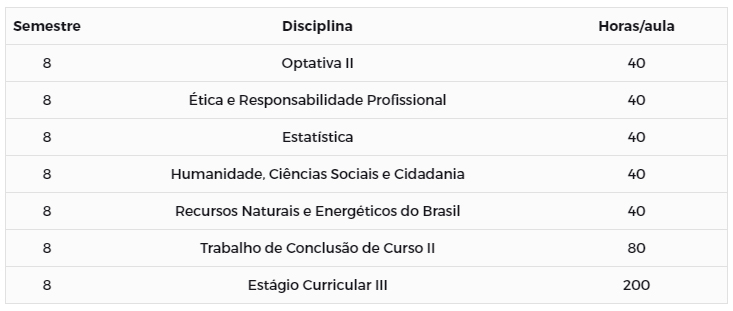 Duração: 8 semestres.